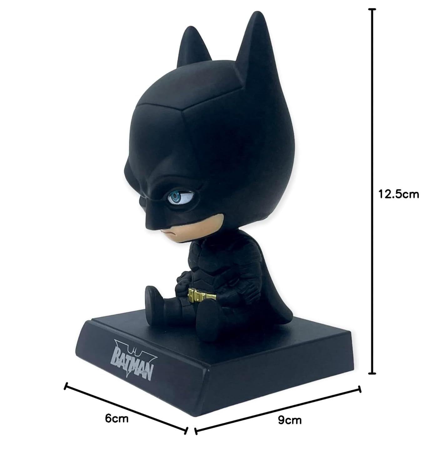 ⚡ Este increíble bobblehead presenta a Batman en su estilo chibi más imponente. Con su icónica máscara negra con orejas puntiagudas, sus intensos ojos azules penetrantes y su expresión seria característica, cada detalle está perfectamente capturado para recrear al vigilante de Gotham City.
