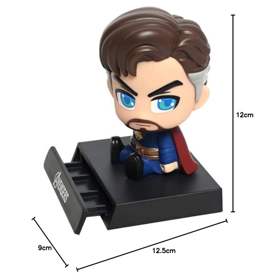 ¡Trae la magia mística a tu colección! Este impresionante Bobblehead estilo chibi de Doctor Strange captura perfectamente a Stephen Strange con su característico cabello castaño peinado hacia atrás, barba de candado, ojos azules intensos, su icónica capa roja levitante y el Ojo de Agamotto dorado en su pecho. ¡Además funciona como soporte para celular!