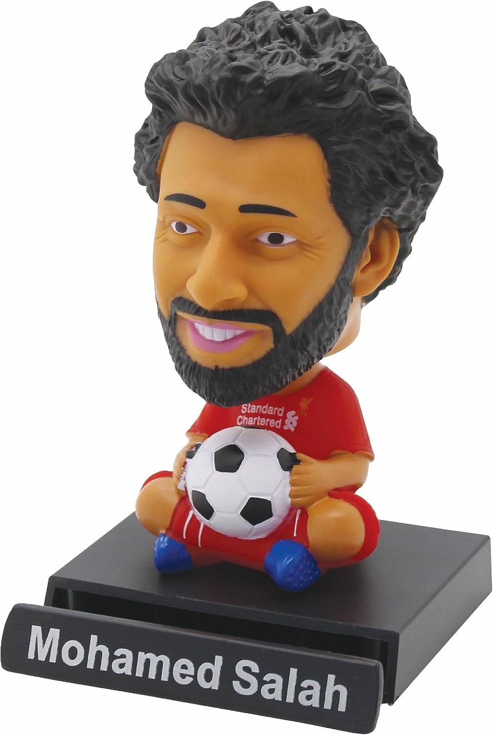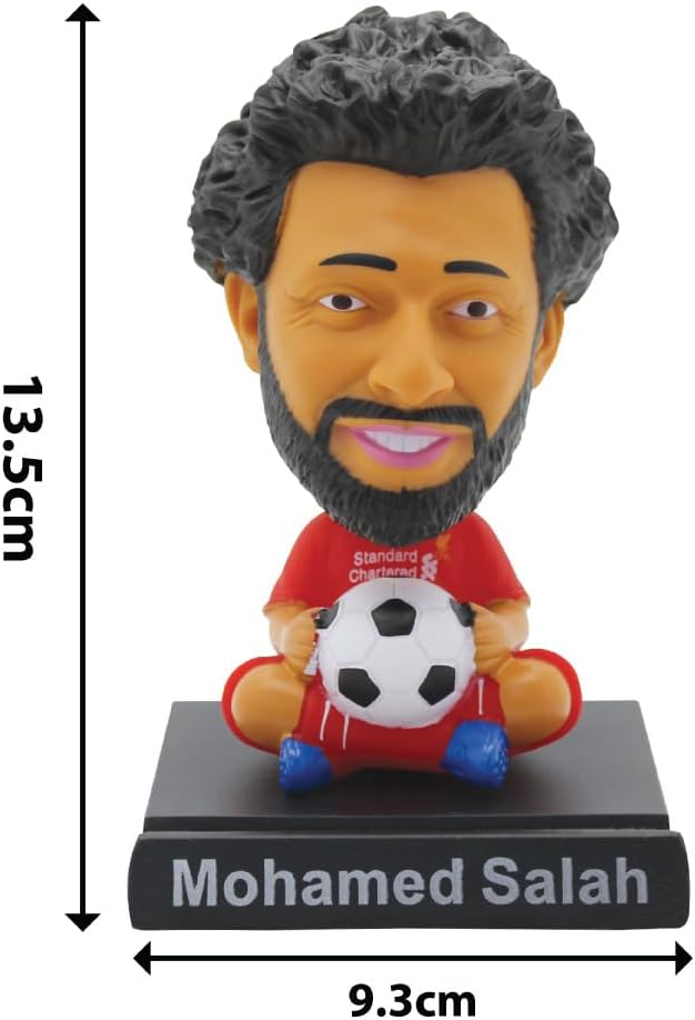 ¡Trae la magia del fútbol egipcio a tu colección! Este impresionante Bobblehead de Mohamed Salah captura perfectamente al legendario delantero del Liverpool con su característico cabello rizado, barba, sonrisa radiante y el icónico uniforme rojo del Liverpool con el patrocinio de Standard Chartered. ¡Además funciona como soporte para tu celular!