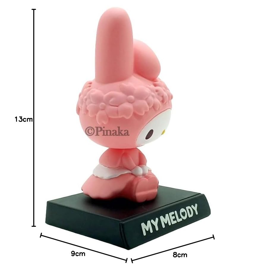 ¡Trae la dulzura de My Melody a tu colección! Este adorable Bobblehead de la icónica conejita de Sanrio captura perfectamente a My Melody con su característico gorro rosa con orejas de conejo, rostro blanco con nariz amarilla, ojos negros expresivos y su vestido rosa coral con detalles blancos. ¡Además funciona como soporte para celular!