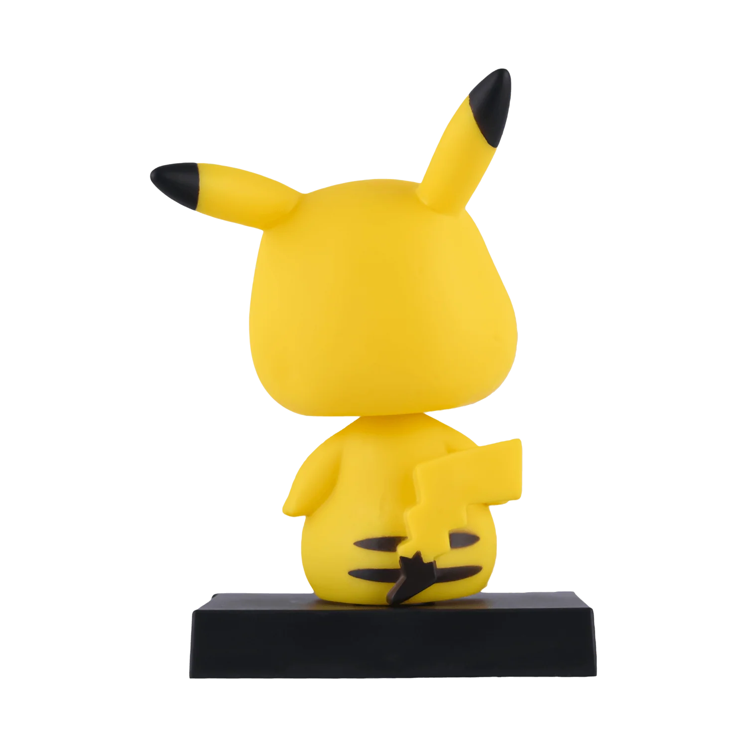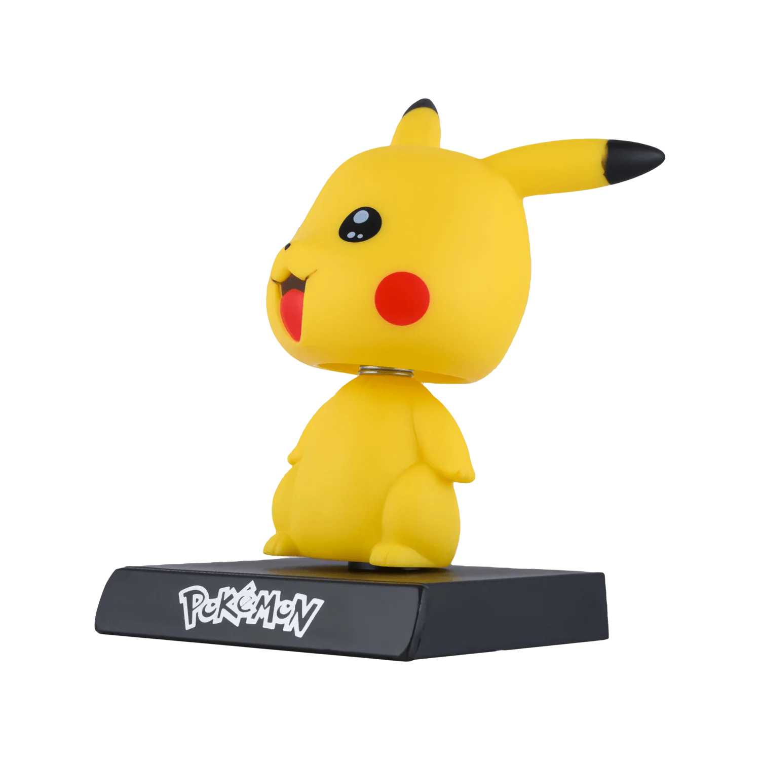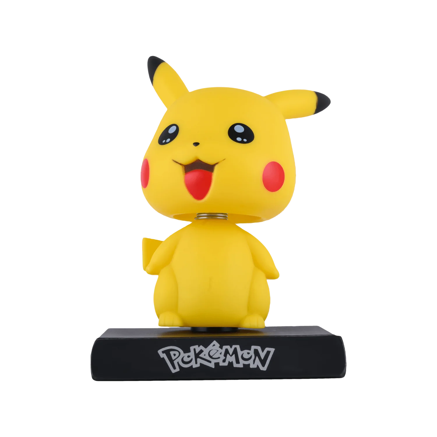 ✨ La figura muestra a Pikachu con su cola en forma de rayo con la marca negra característica, su boca abierta en una expresión feliz mostrando su lengua roja, y su pose sentada adorable. Los detalles incluyen sus pequeñas patas y brazos. La cabeza tiene el clásico movimiento bobblehead que la hace aún más divertida y dinámica, perfecta para capturar la energía del Pokémon más icónico.