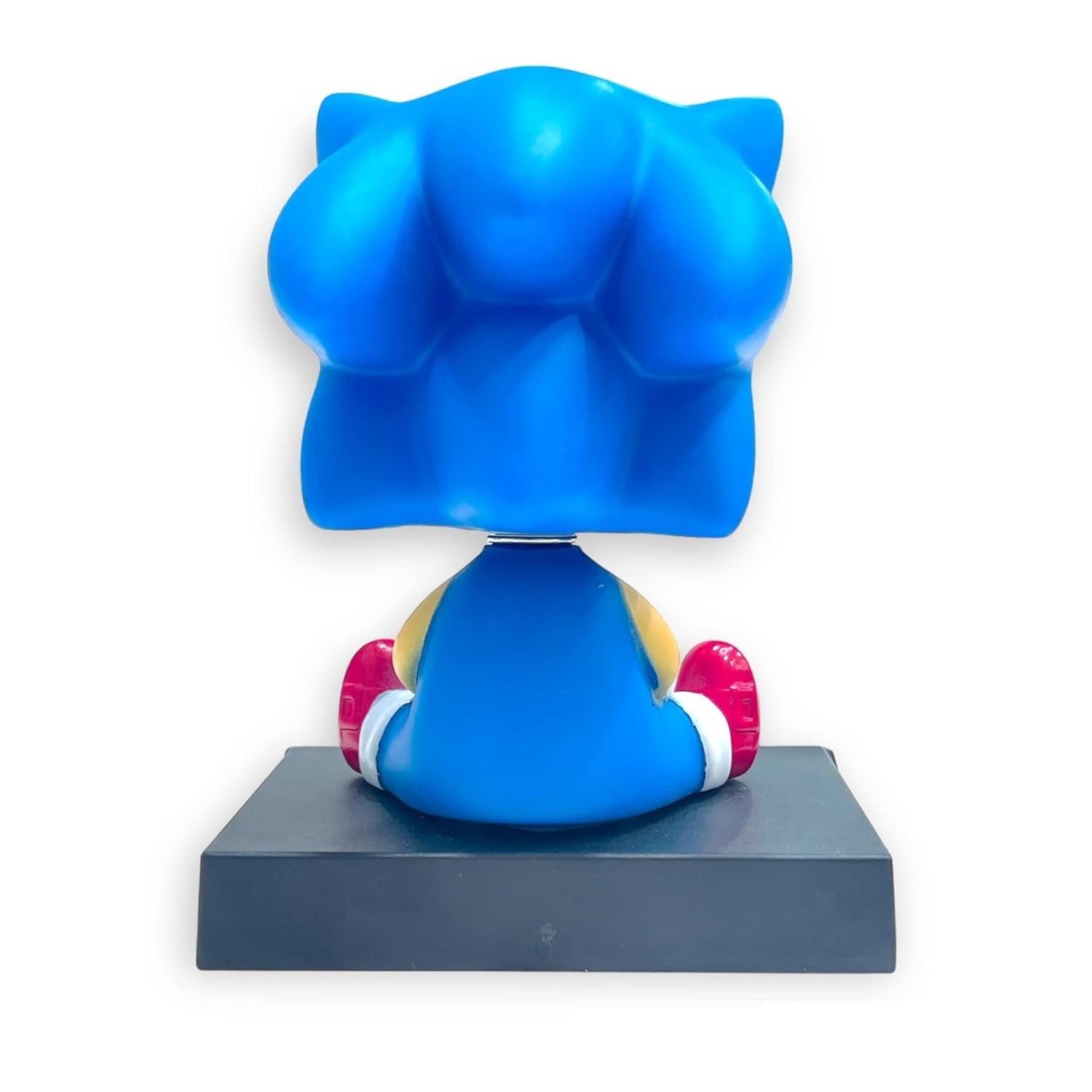 🎮 La figura muestra a Sonic en su pose sentada clásica, con su torso azul, vientre beige y sus inconfundibles zapatos rojos con detalles blancos. La cabeza tiene el clásico movimiento bobblehead que la hace aún más divertida y dinámica, perfecta para capturar la energía del personaje más veloz de los videojuegos.