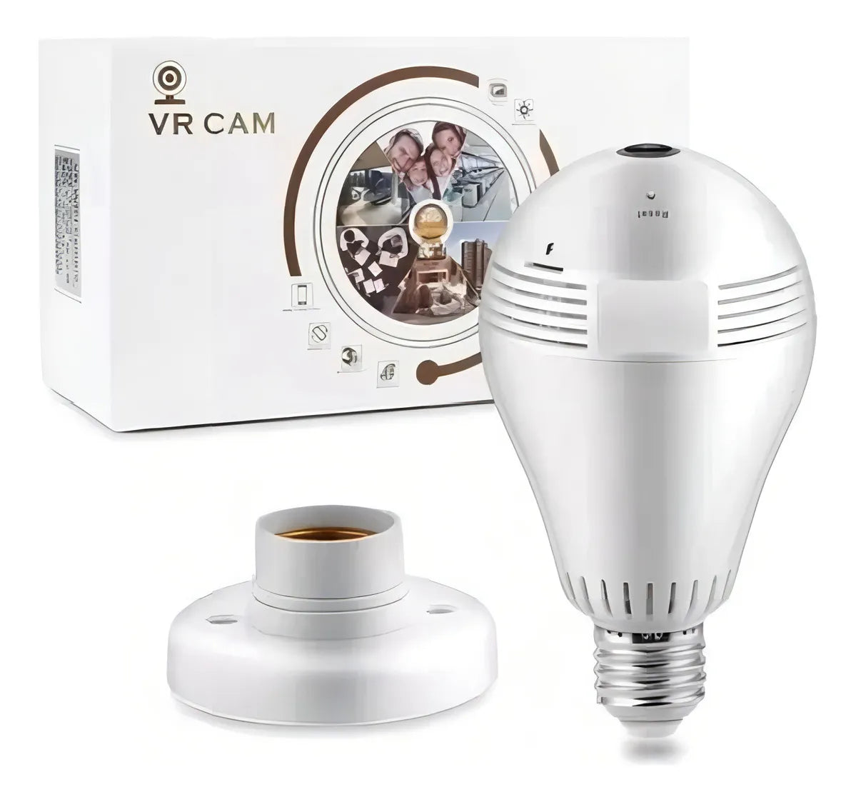 Esta innovadora cámara VR 360° se disfraza perfectamente como una bombilla LED común, proporcionando vigilancia panorámica completa de forma totalmente discreta. La evolución definitiva en seguridad doméstica inteligente.