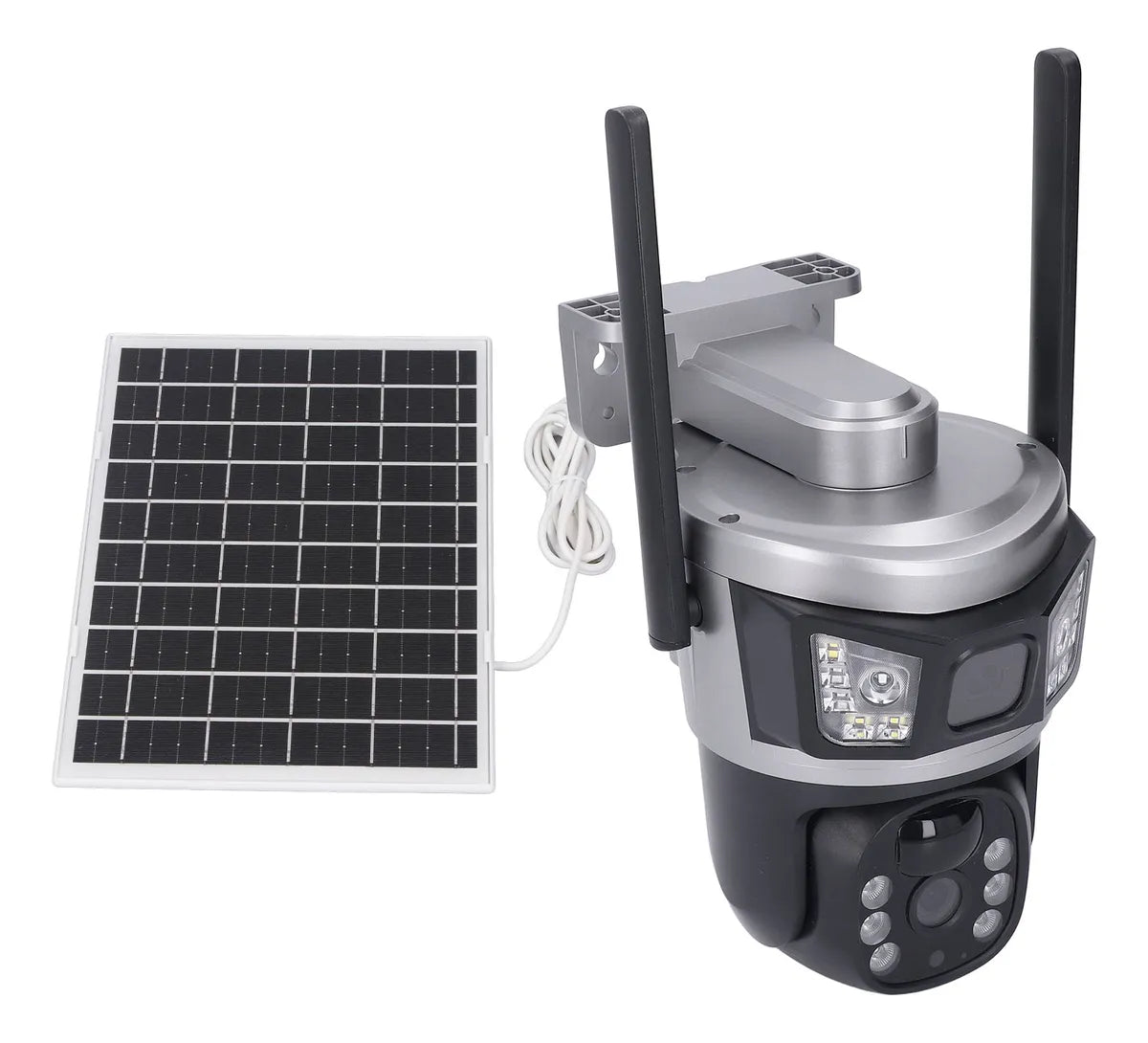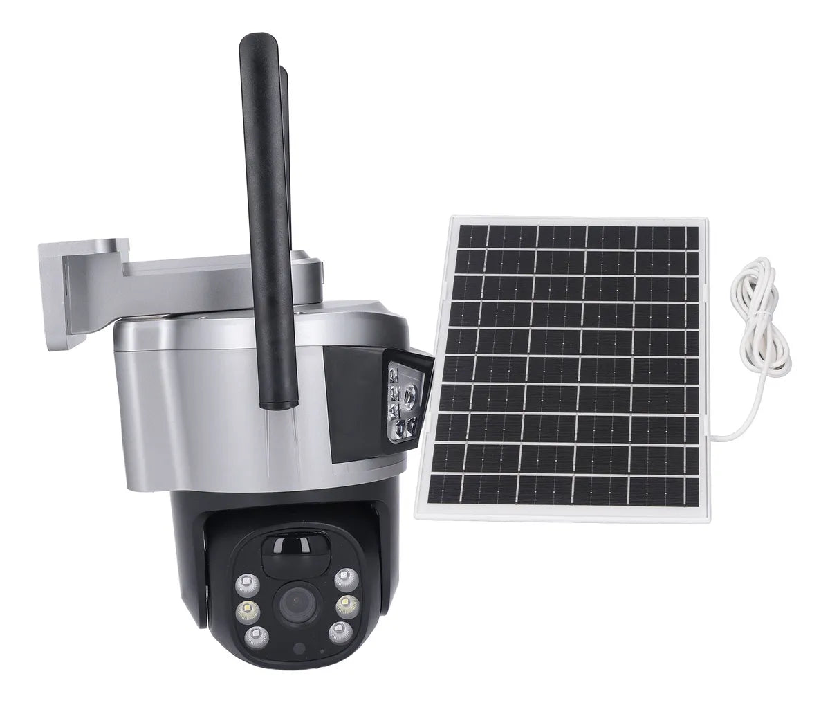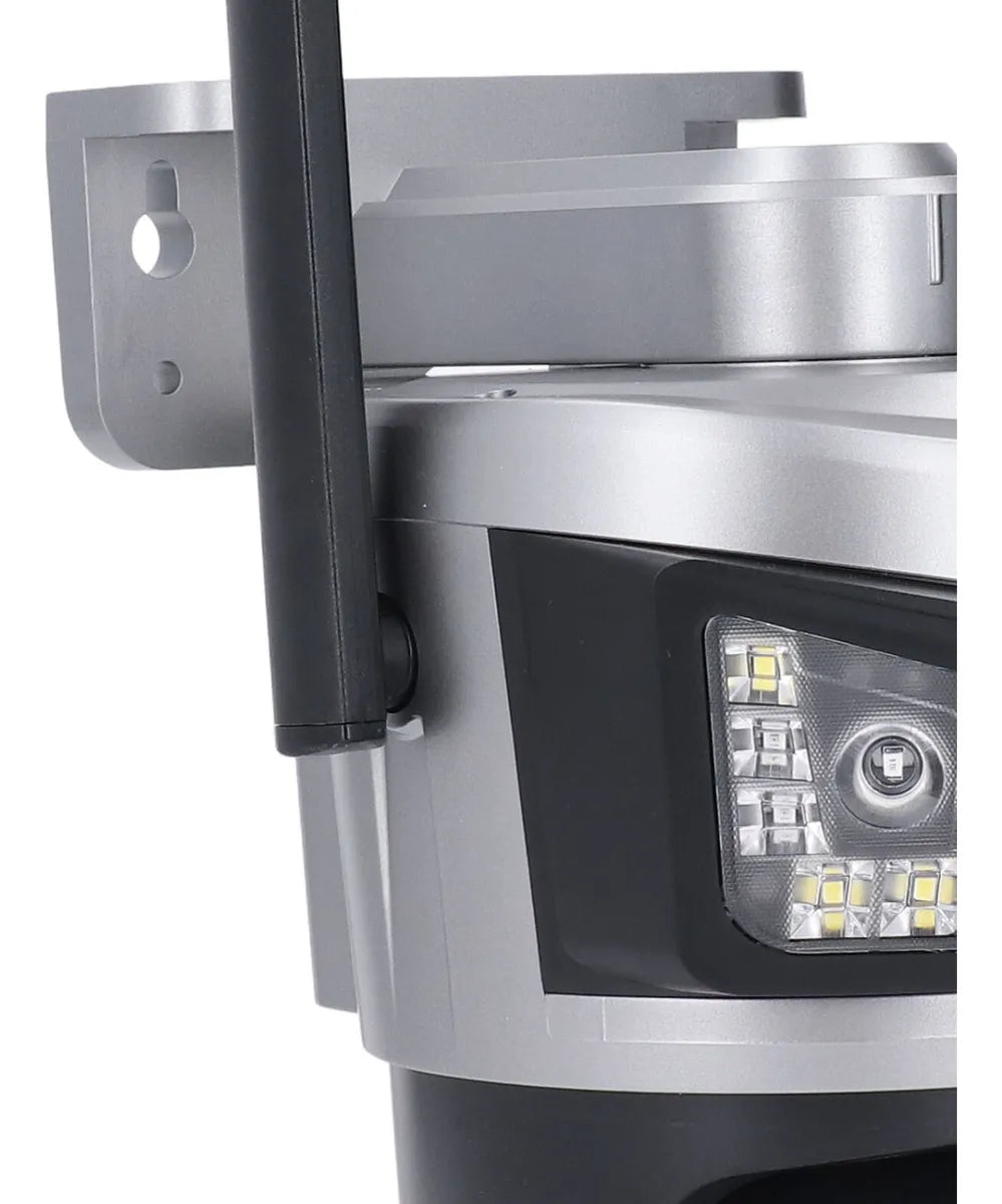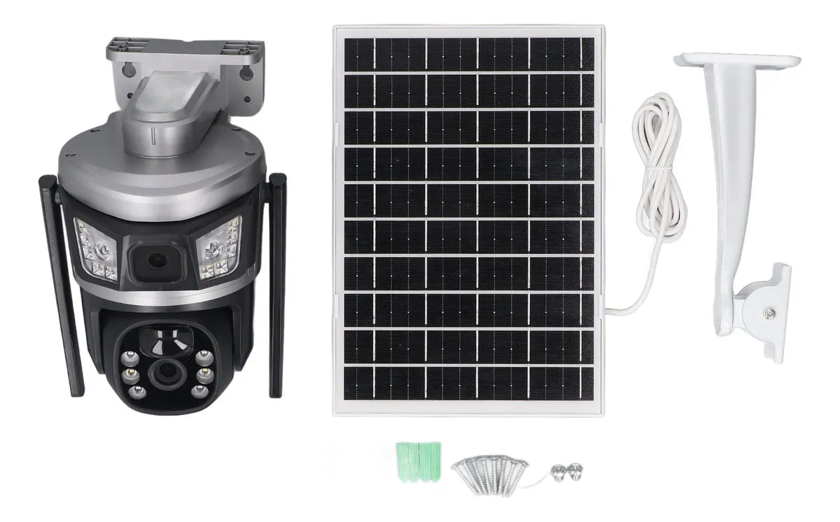 Vigilancia 100% autónoma sin cables de corriente. Esta cámara PTZ con panel solar integrado ofrece seguridad continua alimentada por energía solar, perfecta para áreas sin acceso a electricidad.