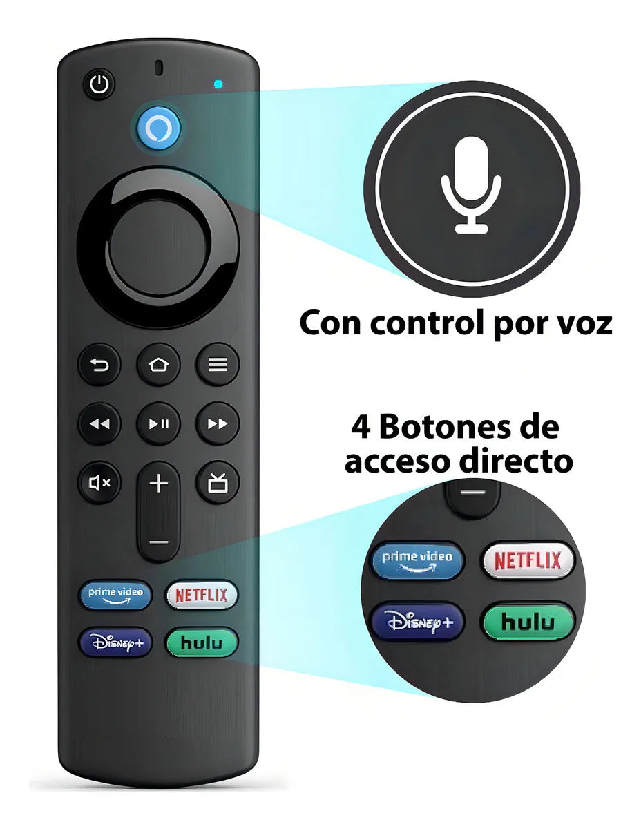 - 📺 4 botones de acceso directo: Prime Video, Netflix, Disney+ y Hulu