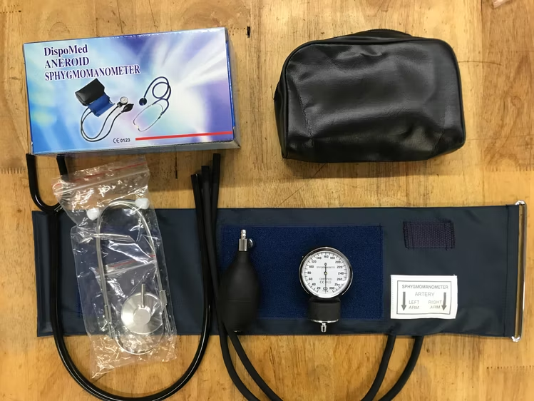 Realiza mediciones precisas de presión arterial con el esfigmomanómetro aneroide DispoMed: tecnología médica confiable, kit completo con estuche y la precisión que necesitas para diagnóstico profesional.