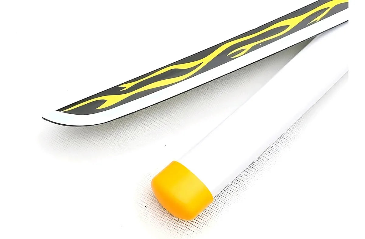 💎 La espada del usuario de la Respiración del Trueno. Esta Espada Nichirin pertenece a Zenitsu Agatsuma, el usuario de la Respiración del Trueno del Cuerpo de Cazadores de Demonios. La hoja amarilla/dorada con patrón de rayos negros representa el poder del trueno y los relámpagos que Zenitsu canaliza en sus ataques. Las Espadas Nichirin cambian de color según el usuario, y el amarillo dorado de Zenitsu simboliza su afinidad con la Respiración del Trueno. La vaina blanca con detalles dorados/amarillos en forma de triángulos/llamas refleja la velocidad del rayo. La empuñadura blanca con patrón de triángulos dorados y la guarda con diseño de rayos/relámpagos representan la técnica más poderosa de Zenitsu: Primera Forma - Destello del Trueno, Sexto Pliegue. Aunque Zenitsu es cobarde cuando está despierto, cuando duerme se convierte en un maestro espadachín letal. Perfecta para coleccionistas de Demon Slayer, cosplayers y fans del anime que buscan la espada amarilla del usuario de la Respiración del Trueno, Zenitsu Agatsuma.