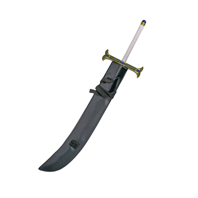 💎 La espada más poderosa del mundo. Yoru (夜 - Noche) es una de las 12 Saijō Ō Wazamono (Espadas Supremas de Grado), siendo la espada negra más poderosa del mundo. Pertenece a Dracule "Ojos de Halcón" Mihawk, el espadachín más fuerte del mundo y uno de los Siete Guerreros del Mar. La hoja negra permanente (Kokutō) fue forjada mediante el dominio supremo del Haki de Armadura de Mihawk. La guarda dorada en forma de cruz ornamentada con gemas verdes/esmeraldas y azules/zafiros representa la riqueza y poder del espadachín más fuerte. El pomo dorado con gema morada/amatista añade elegancia suprema. Yoru es tan poderosa que Mihawk puede cortar barcos de guerra gigantes con un solo movimiento. Esta es la espada que Zoro aspira a superar en su camino para convertirse en el mejor espadachín del mundo. Perfecta para coleccionistas de One Piece, cosplayers y fans del anime que buscan la espada negra más legendaria del espadachín más fuerte, Dracule Mihawk.