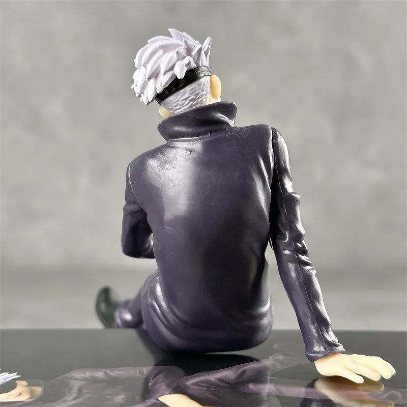 ⚪ Hermosa figura de Gojo Satoru en pose relajada sentado. Con detalles espectaculares que capturan su estilo único, incluyendo su característico cabello blanco y su expresión confiada.