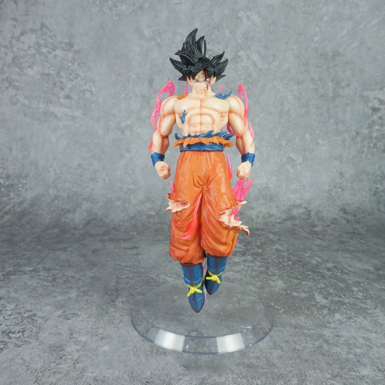 ✨ Esta espectacular figura de 23cm Aprox presenta a Goku en su icónico traje naranja con un nivel de detalle excepcional. La musculatura perfectamente definida, el cabello negro característico y el aura rosa que lo rodea están magistralmente recreados, capturando la esencia del guerrero Saiyan.