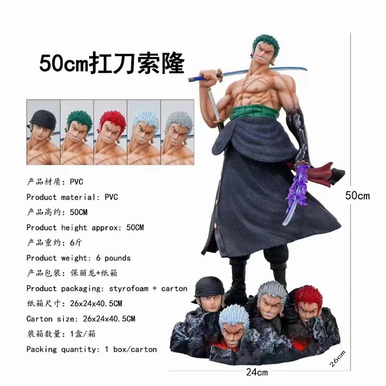 💎 Una obra maestra para coleccionistas serios de One Piece. Esta figura de gran tamaño de Zoro captura perfectamente la esencia del espadachín más letal de los Piratas del Sombrero de Paja. Las múltiples cabezas intercambiables te permiten personalizar tu exhibición y crear diferentes looks para el cazador de piratas.