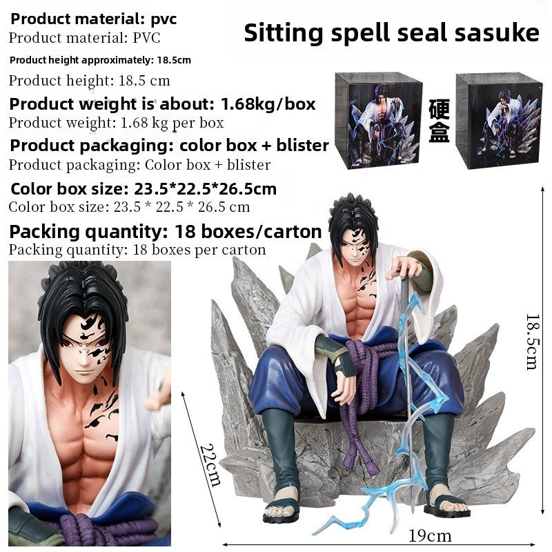 🔥 Impresionante figura de Sasuke en pose sentada con su espada Kusanagi. Con detalles espectaculares que capturan la intensidad del último Uchiha, incluyendo el sello maldito en su cuerpo.