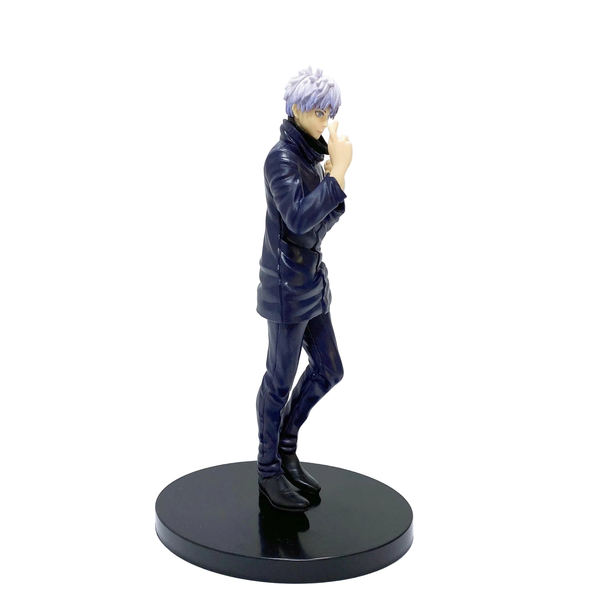 Cada detalle ha sido cuidadosamente trabajado para capturar la personalidad única de Gojo. Desde su cabello blanco perfectamente esculpido hasta los pliegues de su uniforme, esta figura es una representación fiel del hechicero más poderoso. La pose transmite esa confianza absoluta que caracteriza al personaje, mientras que la base negra proporciona estabilidad y elegancia para exhibirla. 🎭