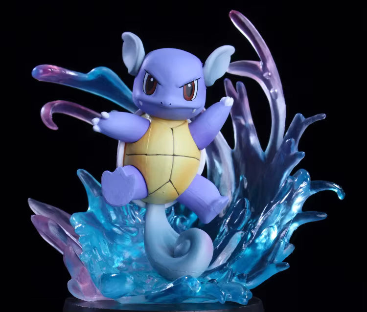 🌊 Esta espectacular figura de 13cm Aprox presenta a Wartortle rodeado de un impresionante escenario acuático cristalino. Con su característico caparazón marrón con detalles de espiral, su cuerpo azul violáceo, sus orejas peludas y su cola esponjosa azul, cada detalle captura la esencia de este Pokémon acuático en evolución.