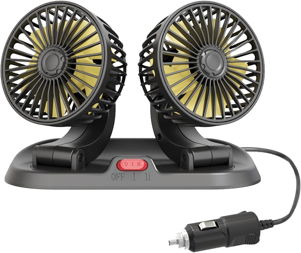 El ventilador doble para auto 12V proporciona circulación de aire eficiente y refrescante para conductores y pasajeros. Con dos motores independientes y conexión directa al encendedor de cigarrillos, es la solución perfecta para mejorar el confort durante viajes largos o en climas calurosos.